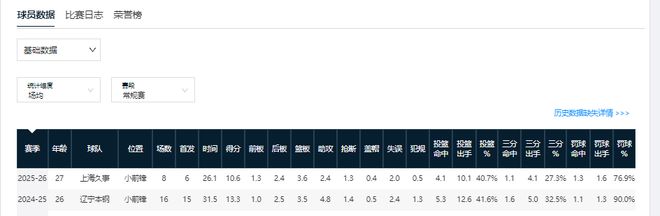 趙率舟上賽季在遼寧隊屬于邊緣替補,上場機會寥寥無幾,場均只能獲5.4分鐘的出場時間。因此,在休賽期趙率舟被遼籃當(dāng)作交易籌碼送到了吉林男籃,而他在新東家目前是高開低走。