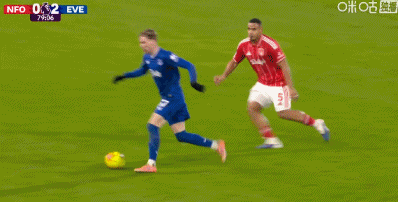 第79分鐘,加納精準斜塞,巴里前插推射得手!諾丁漢森林0-2埃弗頓