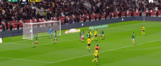 1分鐘后,布羅佐維奇開出角球,C羅頭球擺渡,菲利克斯包抄射門打飛;第35分鐘,加奈姆外圍一腳遠射,球擊中門框彈出!第42分鐘,C羅門前接球推射滑門而過;半場結束前,科曼的近距離頭球又擦著立柱偏出。
