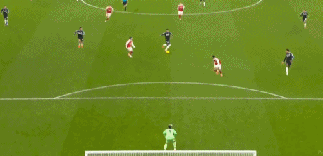 第52分鐘,桑喬后場被斷,厄德高反擊當中送出妙傳,蘇維門迪單刀推射破門,阿森納4分鐘連進2球,2-0!