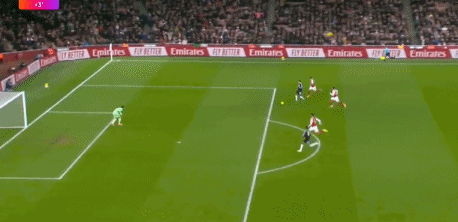 蘇維門迪策動反擊,特羅薩德左路橫傳,替補登場的熱蘇斯世界波直掛死角,4-0!