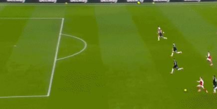 第13分鐘,孔薩突然上搶斷球策動反擊,推進到禁區前沿再送妙傳,沃特金斯絕佳機會推射打偏,阿森納逃過一劫。
