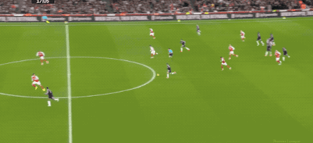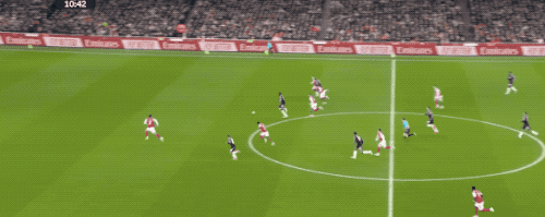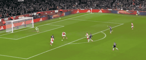 第48分鐘,薩卡開出角球,加布里埃爾在馬丁內(nèi)斯的腋下將球打進,這也是阿森納本場獲得的第一個角球。