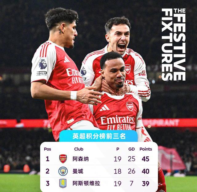 全場比賽結束,阿森納4-1大勝維拉,成功取得英超4連勝和各項賽事6連勝,19輪積45分以5分優勢強勢領跑,維拉各項賽事11連勝終結積39分位列第3!